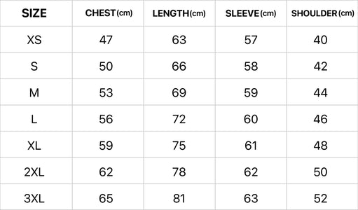 If you’re between size, choose one size up for an oversized look or one size down for fitted style.
